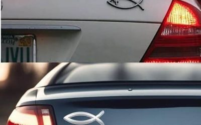 Pewnie już widzieliście to na światłach: dyskretną naklejkę w kształcie ryby na tylnej klapie samochodu. Minimalistyczna, bez tekstu, czasem stylizowana……