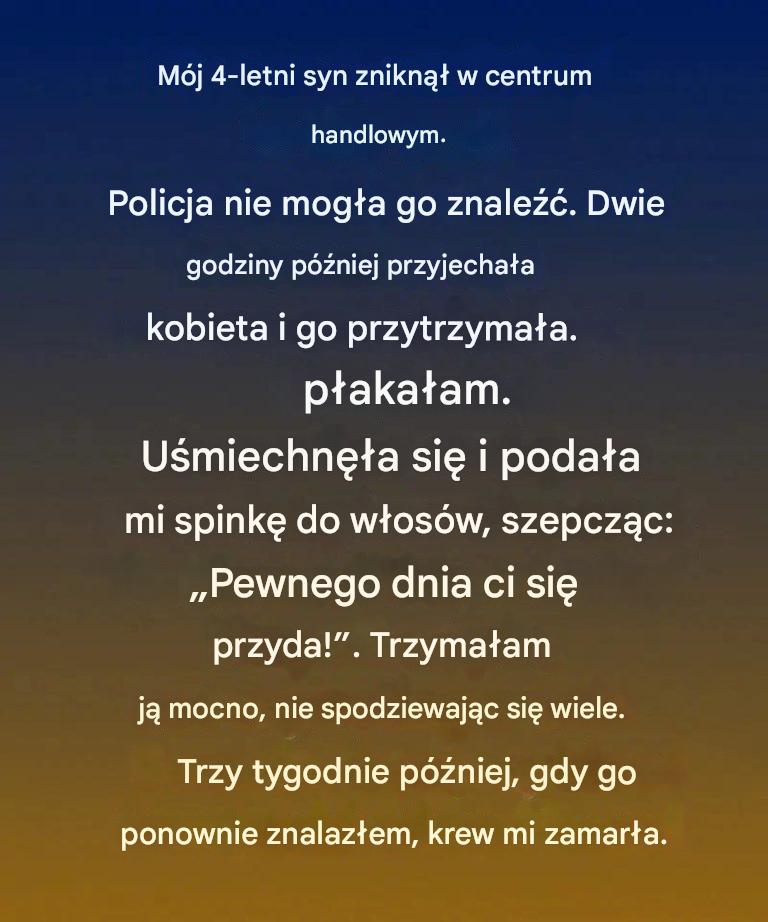 Mój czteroletni syn zniknął w zatłoczonym centrum handlowym. Policja szukała wszędzie, ale nigdzie go nie było.
