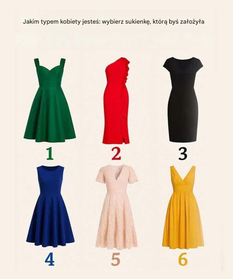 Jeśli wybierzesz zieloną sukienkę, jesteś spokojna, stabilna i pełna cichej siły. Jesteś typem kobiety, która ceni harmonię i autentyczność. Ludzie czują się komfortowo w Twoim towarzystwie, ponieważ emanujesz ciepłem i zaufaniem. Jesteś ambitna, ale nigdy bezwzględna: rozwijasz się we własnym tempie, tak jak sama natura.