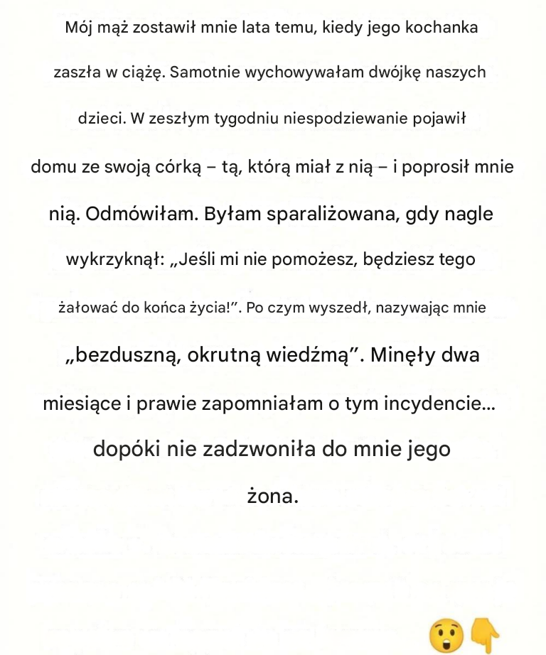 Czas odcisnął swoje piętno na ciszy. Moje dzieci stały się silniejsze. Ja również. Ból, zamiast mną dominować, stał się czymś, co rozumiem. Myślałam, że ten rozdział mojego życia został wreszcie zamknięty.