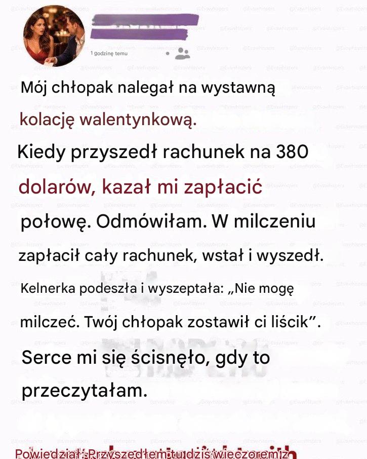 Czasami najbardziej odkrywcze momenty w związku jawią się w przebraniu, jako zwyczajne sytuacje. Dla pewnej kobiety wieczór, który miał być najbardziej romantycznym w jej życiu, przerodził się w moment odkrycia prawdy, która zmieniła wszystko.