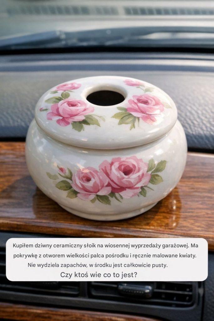 Ozdobiony ręcznie malowanymi kwiatami i z pokrywką z nietypowym otworem wielkości palca pośrodku, ten słoik nie przypominał niczego, co widziałem wcześniej. Był całkowicie pusty, bez wyczuwalnego zapachu ani osadu w środku. To rozbudziło moją ciekawość i zaprowadziło mnie w podróż, by odkryć pochodzenie i przeznaczenie tego tajemniczego naczynia. Czy to zapomniany relikt minionej epoki, czy może zwykły przedmiot codziennego użytku z nieoczekiwaną historią?