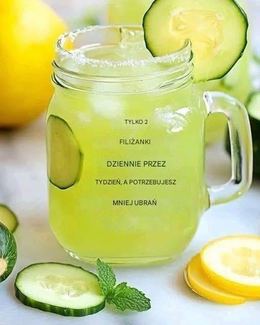 Dekoracja: świeże plasterki cytryny, ogórek i gałązki mięty