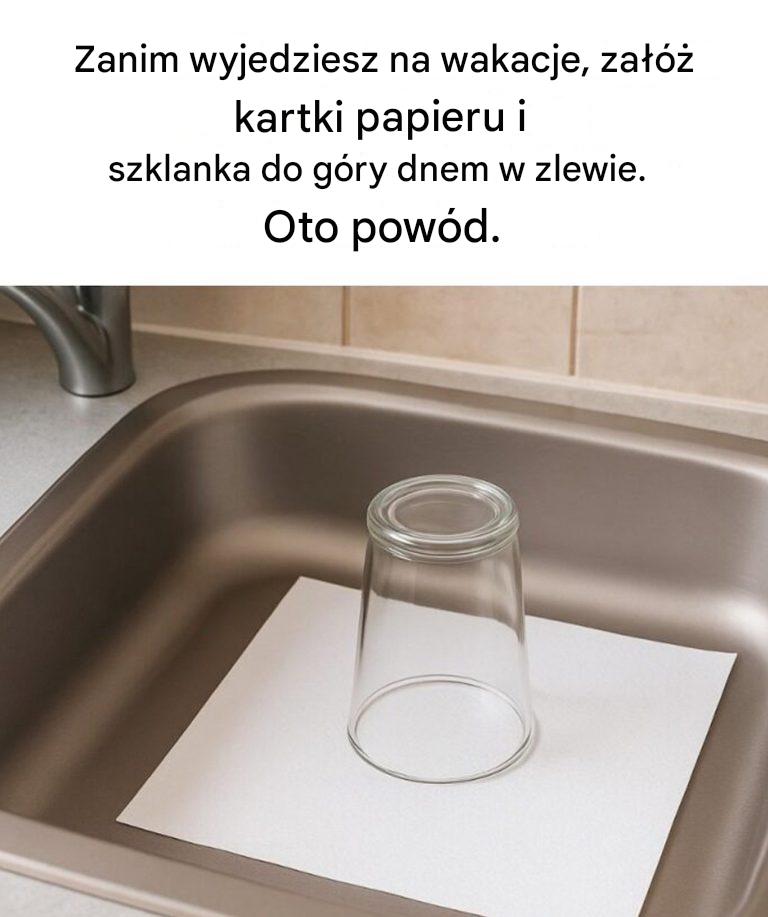Myślimy o wszystkim przed wyjściem: zakręcamy wodę, opróżniamy lodówkę, włączamy alarm. Ale co ze zlewem? Często o nim zapominamy. A przecież to właśnie tam często pojawiają się niemiłe niespodzianki. Nieprzyjemne zapachy, wilgoć, owady… Na szczęście istnieje bardzo prosty trik, certyfikowany przez profesjonalistów, darmowy i bardzo skuteczny: połóż szklankę do góry dnem na kartce papieru w zlewie. Mały gest, który może wiele zmienić.