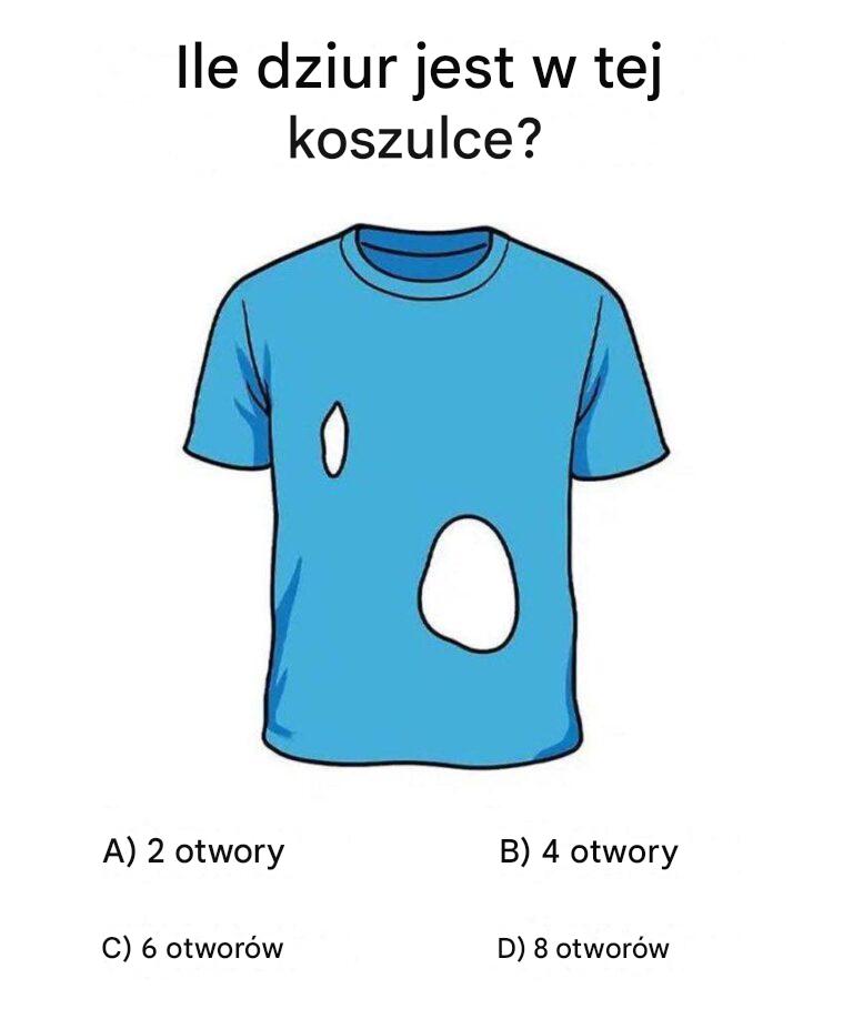 Klasyczny T-shirt ma podstawowe otwory: rękawy, kołnierzyk i dół. Mimo to niewielu osobom udaje się znaleźć odpowiedź za pierwszym razem. Dlaczego? Nasze mózgi mają tę niefortunną tendencję do nadmiernego komplikowania spraw.